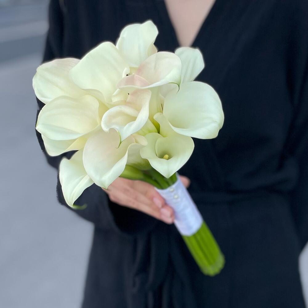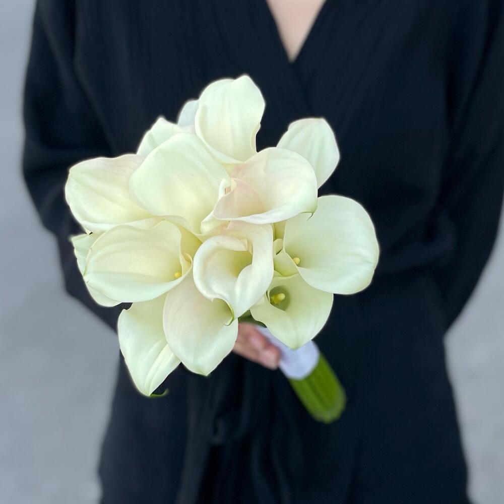 Самый популярный свадебный букет этого сезона – моно из калл, оформленных в атласную ленту!Каллы заказываются индивидуально под каждый букет, поэтому заказ лучше делать минимум за 8 дней до торжества